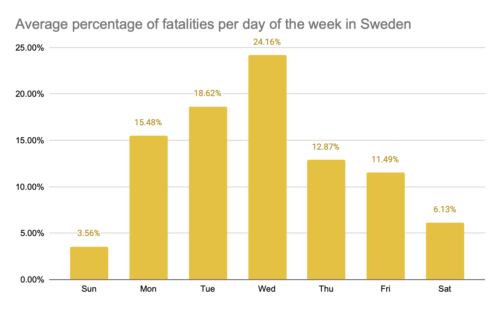 Statistics coming from Sweden are not strait forward to understand and actually requires significant processing. Both in terms of infections and fatalities. Sweden is known only to test those which not only present symptoms, but only when those symptoms represent a significant risk, requiring hospital care, which significantly reduce the number of known infections. The lack of proper testing was made all but too apparent the green activist Greta Thunberg become infected, but never tested, as published on Instagram.