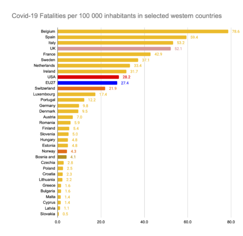 Also, comparing the current infection rate, Sweden is performing worse than any other European country exhibiting the highest per capita infection rate.